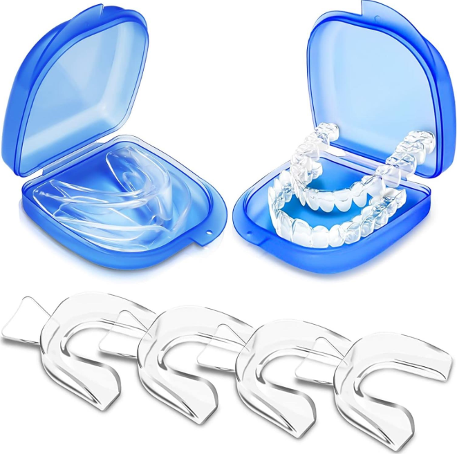 В коплект входит: 4 капы + 1 футляр для переноски капы Функция продукта: предотвращают скрежетание зубами, снимают боль в челюсти, височно-нижнечелюстном суставе, защищают зубы ночью, предотвращают движение. Описание: Изделие изготовлено из пластичного материала, пригодного для контакта с пищевыми продуктами, а именно термопластика.. Вы можете создать формы, идеально соответствующие вашим зубам, с помощью простого слепка зубов. Он не содержит BPA, не содержит никаких вредных химических веществ, независимо от того, как долго он находится во рту, он не окажет воздействия на организм человека, пожалуйста, используйте его с уверенностью.